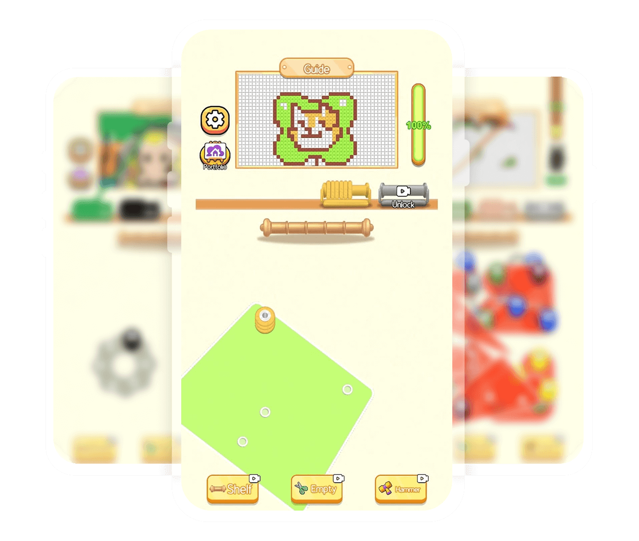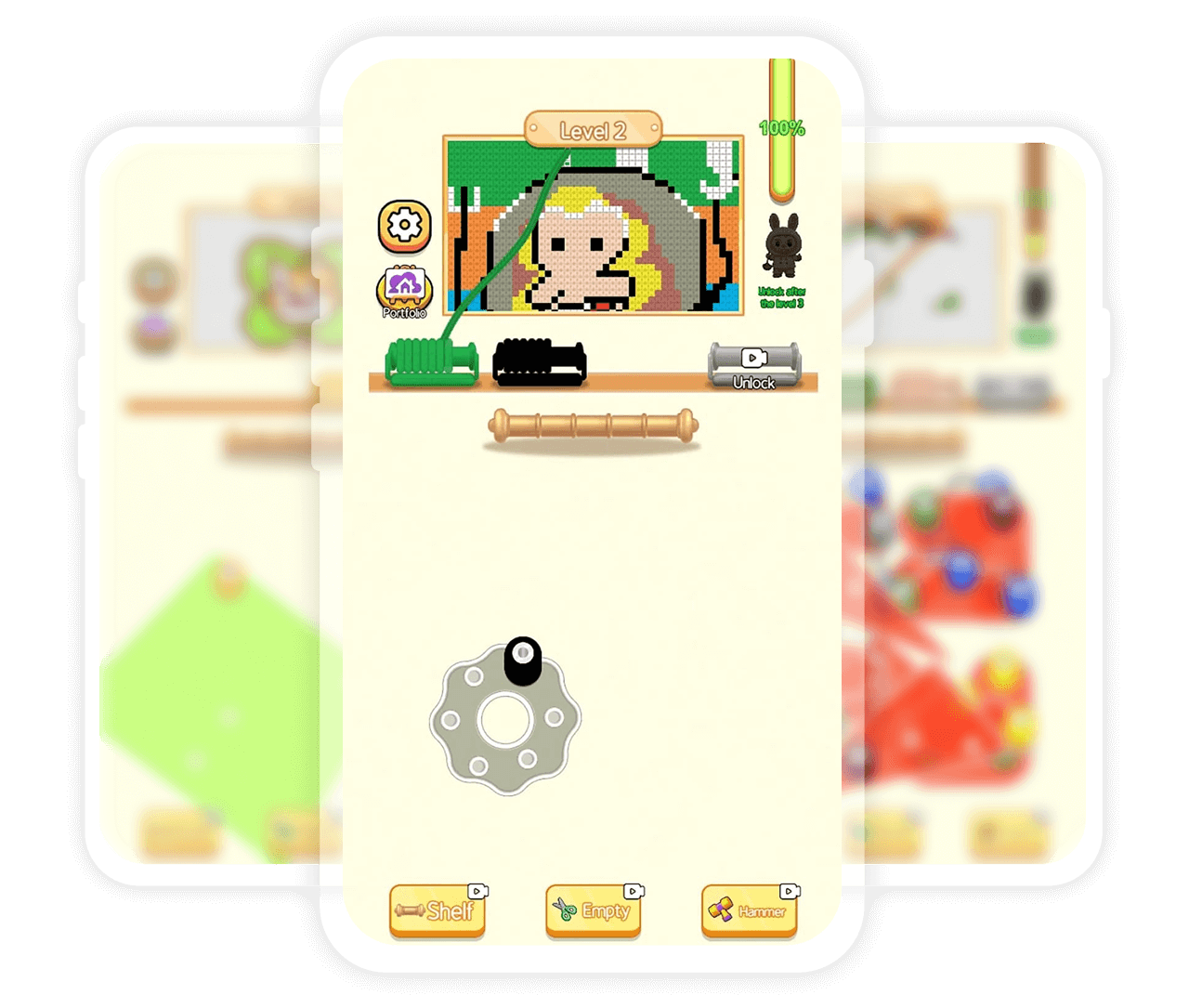 Collect and match three yarn balls of the same color to weave sections of a canvas. Progress through increasing levels of difficulty, requiring precise yarn sorting. Enjoy smooth 3D visuals as you unveil the complete artwork with each successful match.